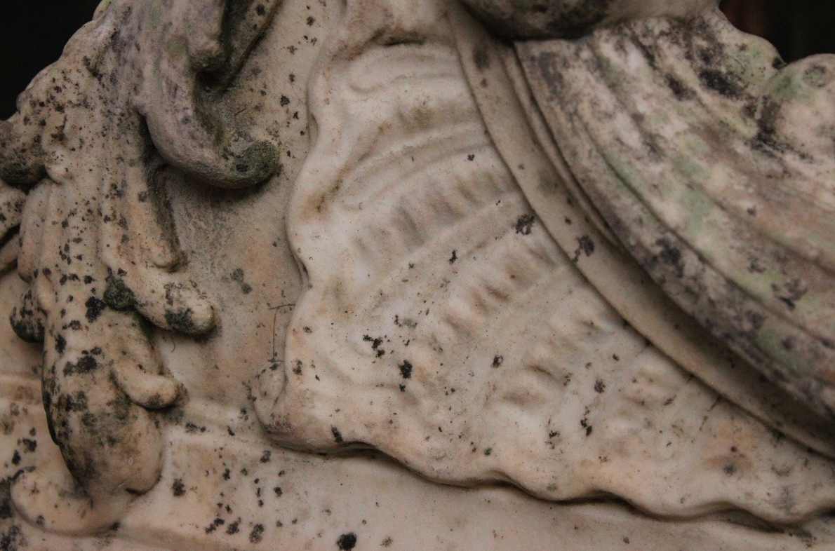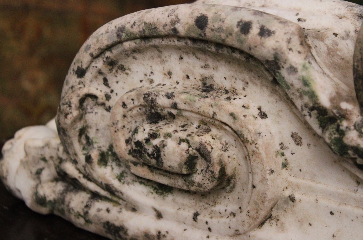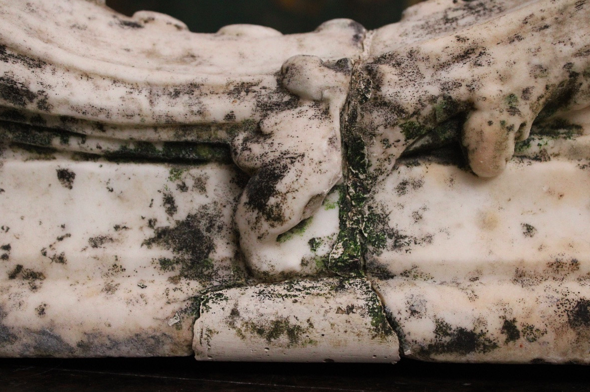 – Outre ses dimensions, cet élément se distingue par sa finesse de sculpture exécutée en ronde-bosse dans un marbre blanc d’une belle qualité.