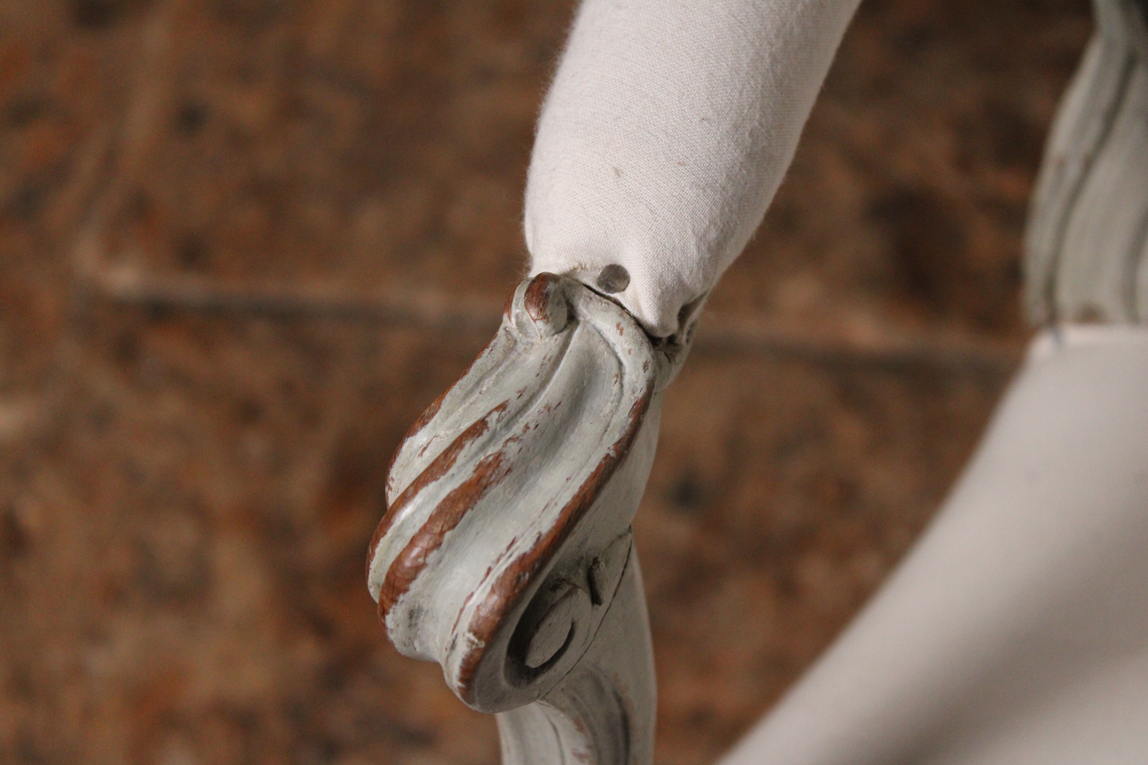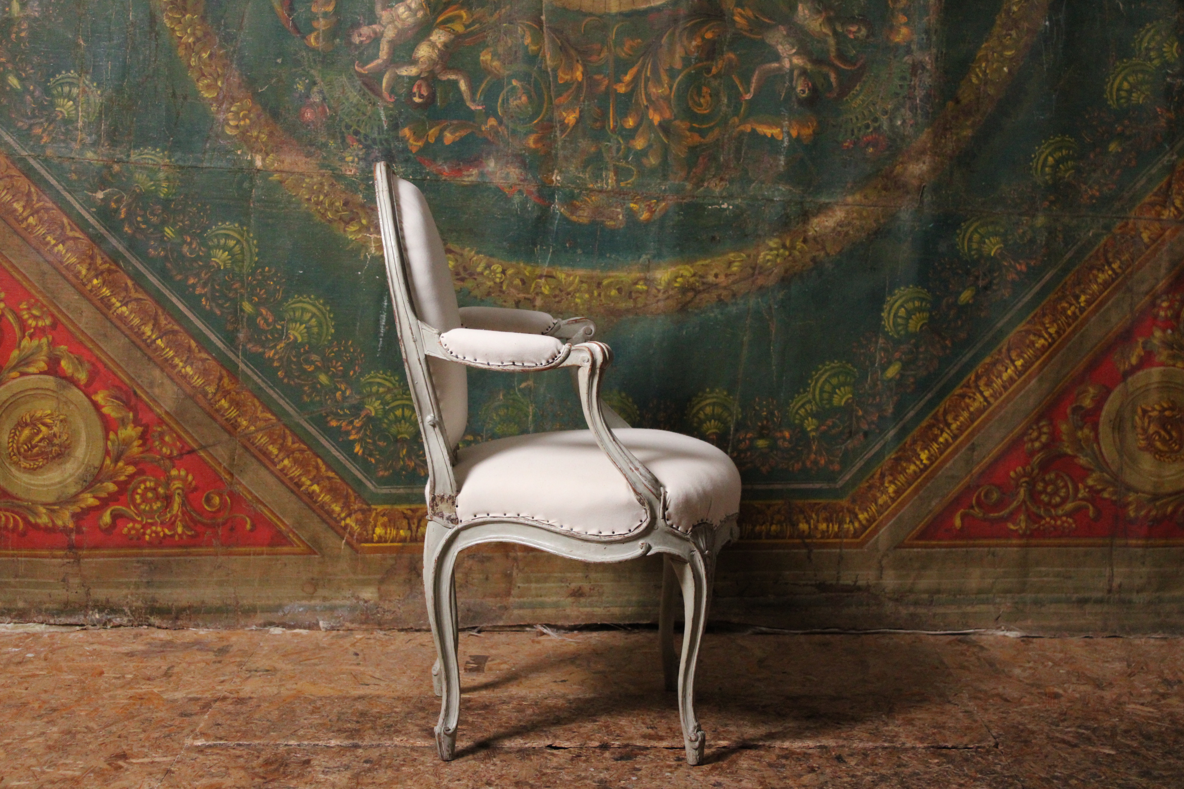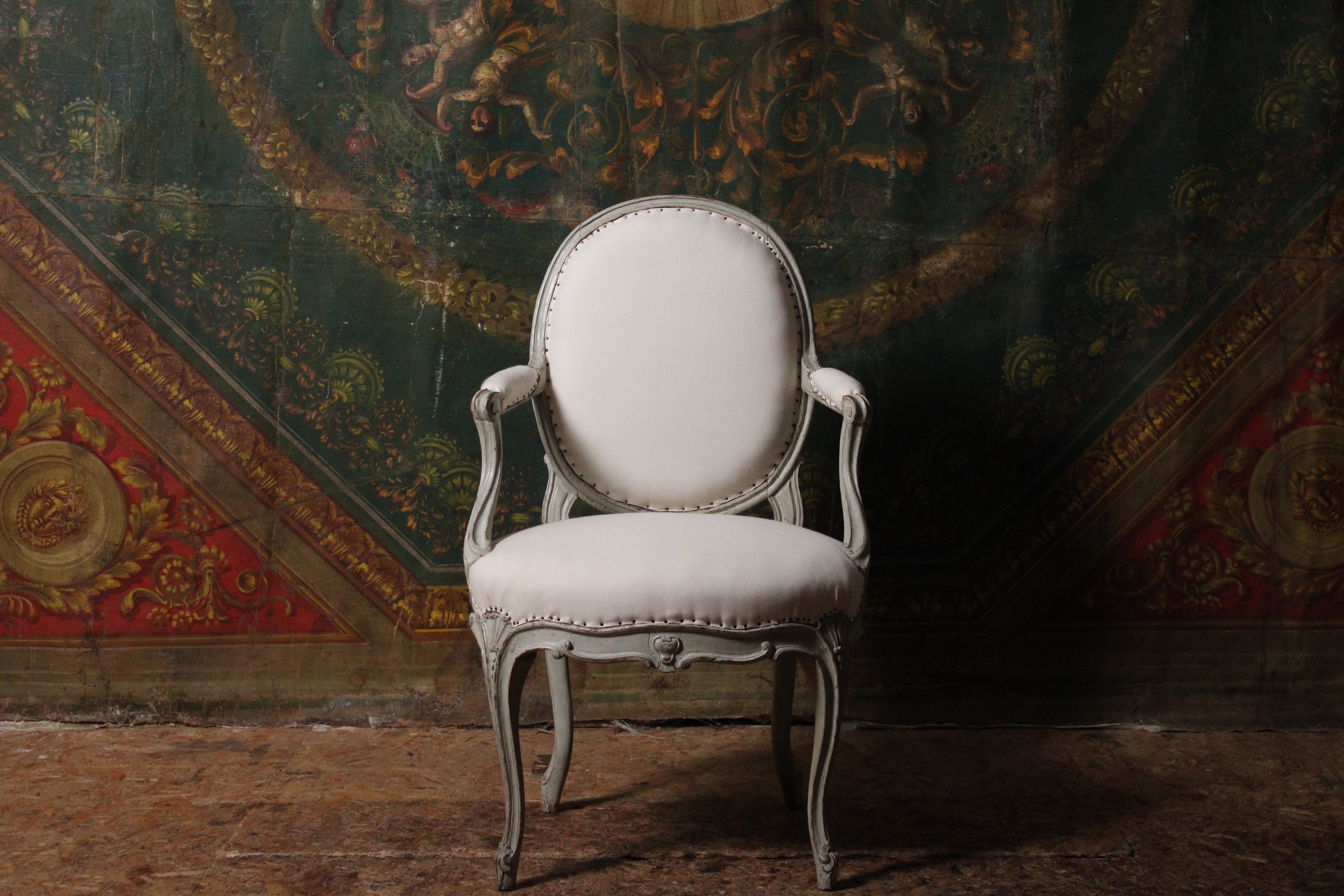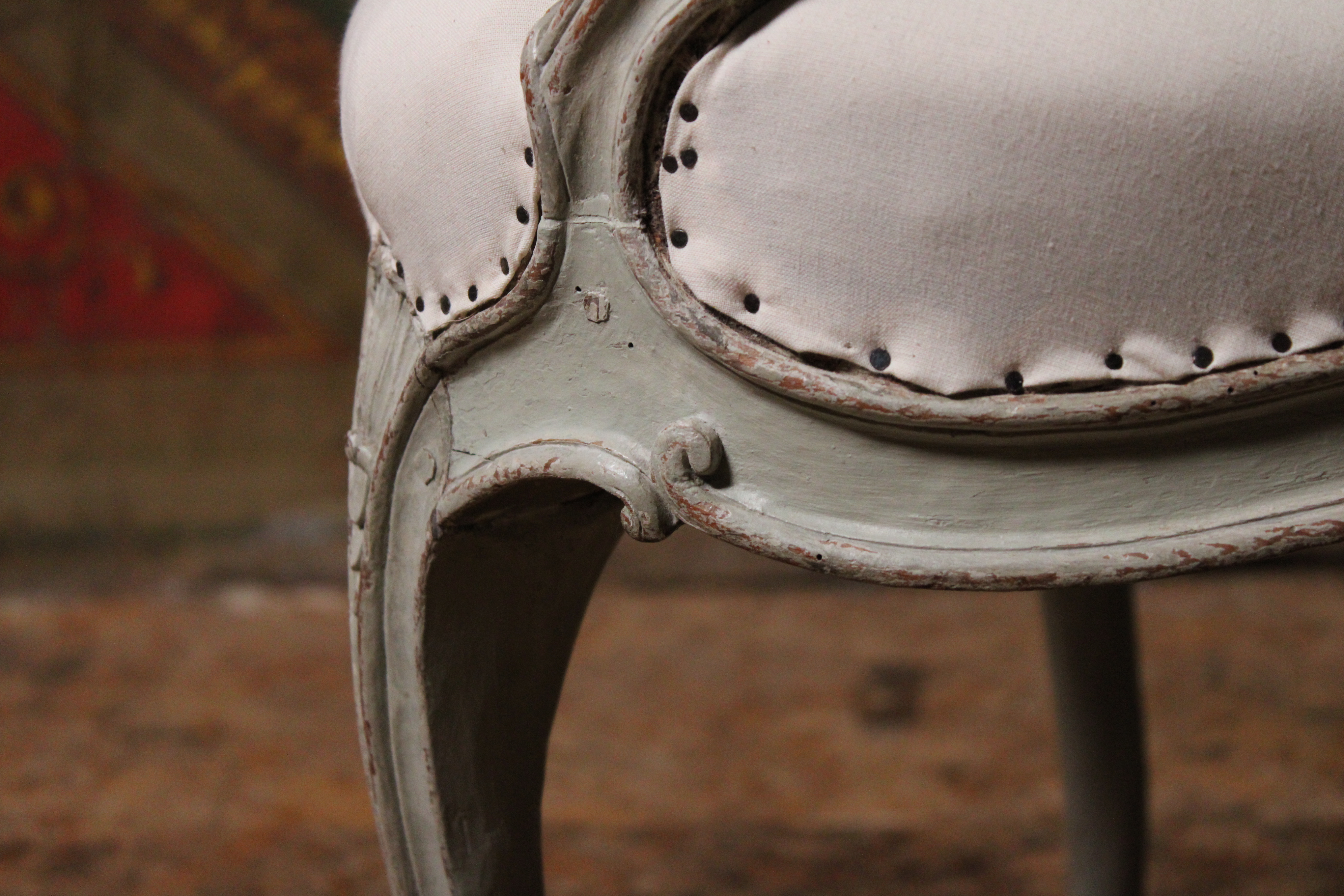 – Très bon état. Fauteuil garni à blanc (la garniture vient d’être restaurée) laissant au futur acquéreur le choix du tissus d’ameublement.