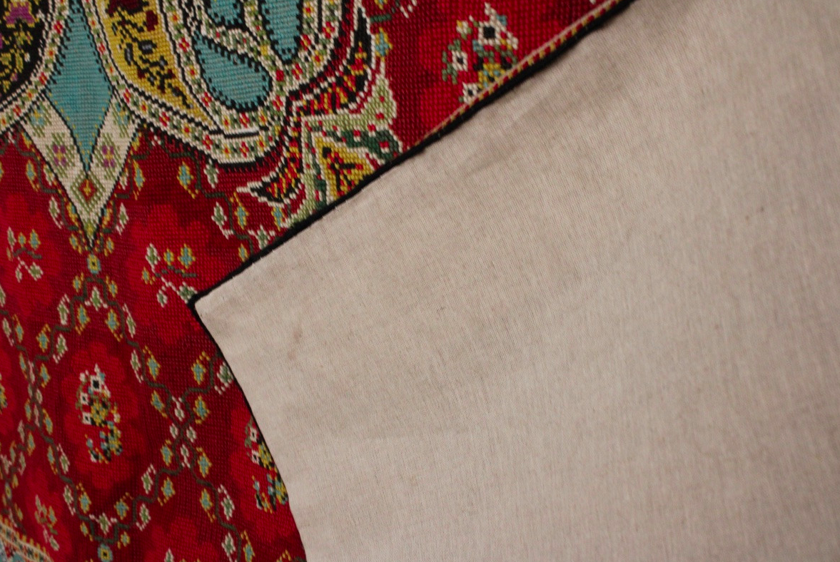 – La technique employée du petit-point, permettant une grande finesse et qualité de tissage, ajoutée à la vitalité des couleurs employées confèrent au tapis une appréciable vigueur décorative.